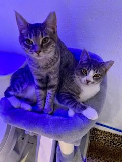 Sasha and Fancy (white nose) are siblings who love each fiercely. They are a bonded pair and are excited about finding their forever home. They were born mid-October 2025. They are spayed and up to date on vaccines.